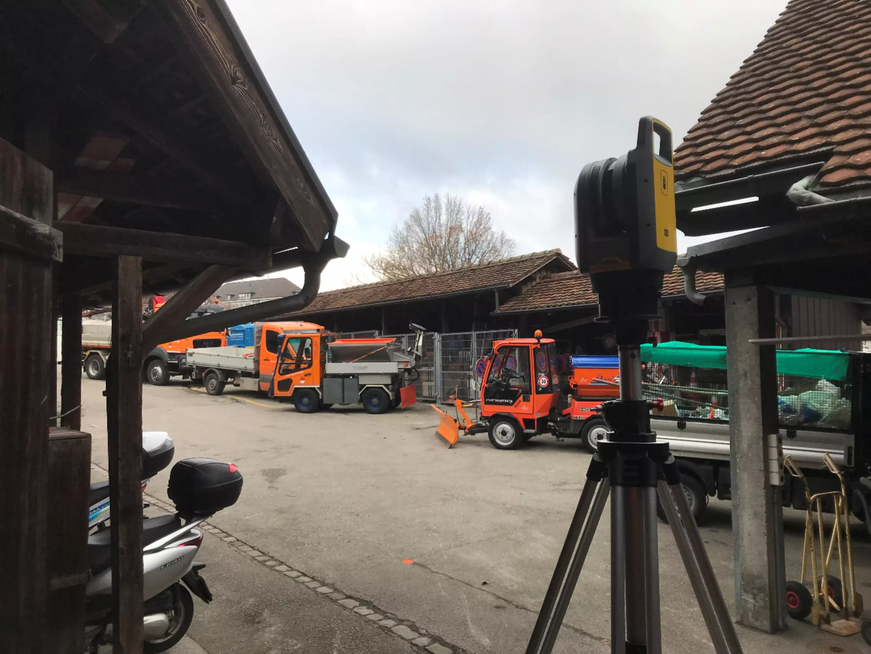 Zur vollständigen Erfassung der fünf Gebäude und Mauerwerke wurden innerhalb von vier Tagen 997 Scans ausgeführt. Da im Stadtwerkhof grosse Mengen Material einlagert sind, stellten insbesondere die gut gefüllten Lagerräume sowie die engen Platzverhältnisse eine besondere Herausforderung an die Aufnahmen. Das umliegende Gelände sowie die Dachflächen wurden mit Drohnen und Tachymetern aufgenommen.