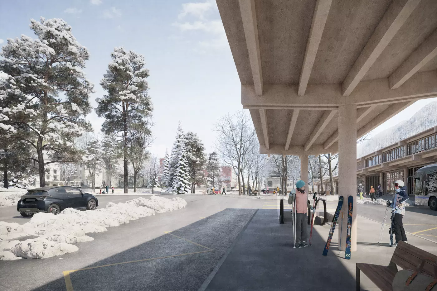 Mit der Bündelung der Parkierungsanlagen in Davos Dorf und den direkten Anschlüssen an den Perimetergrenzen, wird der Verkehr auf direktem Weg in die Abstellanlagen geführt und das Ortszentrum deutlich entlastet. Darüber hinaus werden Flächen für die übrigen Verkehrsteilnehmer freigespielt. Die Fuss- und Radwegbeziehungen werden optimal auf die Bedürfnisse abgestimmt und der neue Bushof erfüllt alle Anforderungen an behindertengerechtes Bauen im öffentlichen Raum. Ein wesentlicher Bestandteil des neuen Ortszentrum ist die Quartierverbindung.
