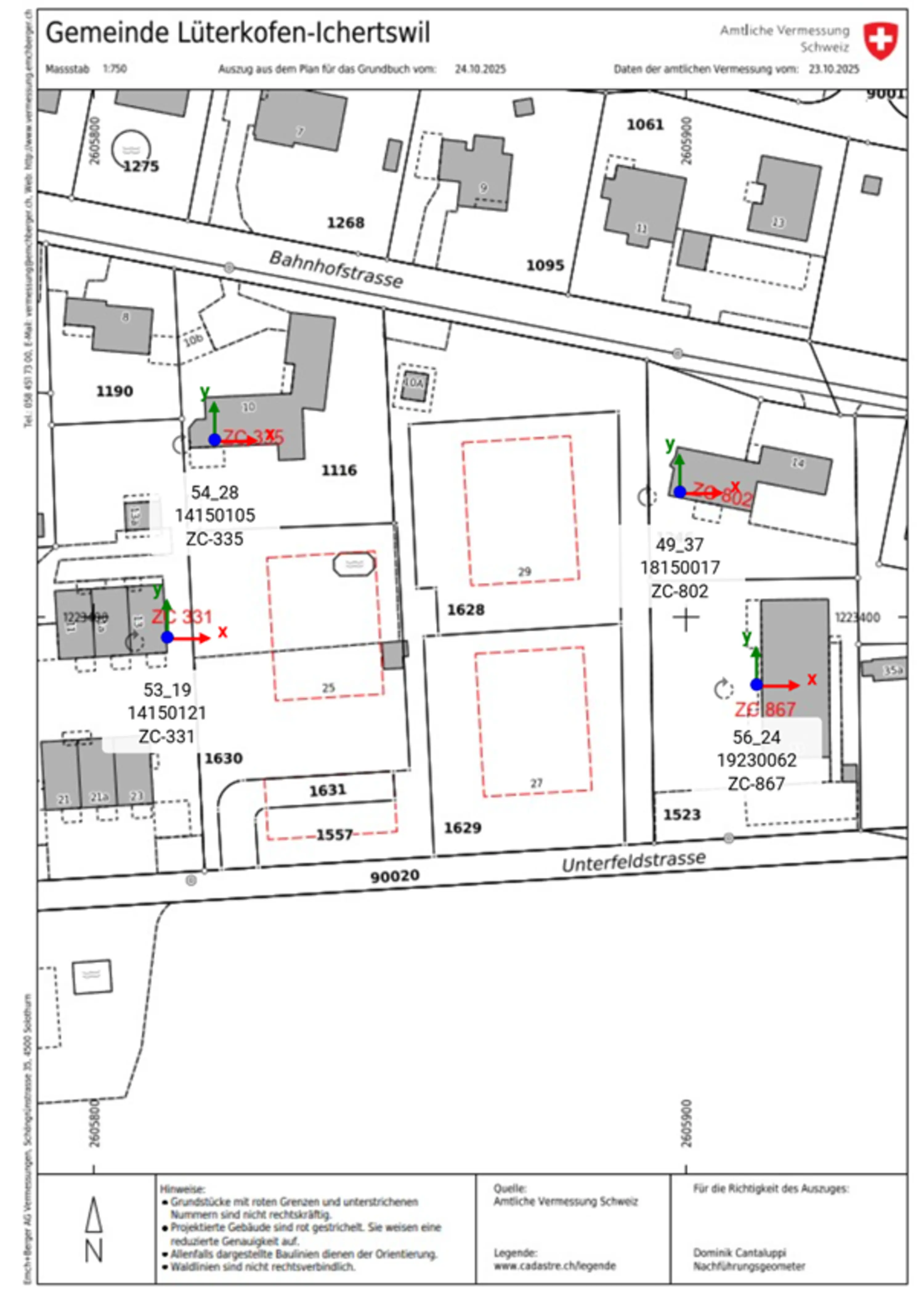 Für die Renovierung der historischen Kirche werden Bestandspläne benötigt. Die Kirche umfasst das Kirchenschiff, eine Empore, den Dachstuhl, den Kirchenturm, sowie ein unterirdisches Gewölbe (Katakombe). Für die Bestandesaufnahmen vor Ort wurde ein terrestrischer Laserscanner der neusten Generation (Trimble X7) eingesetzt. Damit konnte das Objekt mittels 215 Scanstationen innerhalb von 2 Arbeitstagen vollständig erfasst werden. Parallel zu den Scanaufnahmen haben wir mittels Tachymetrie ein lokales, geodätisches Fixpunktnetz im Aussenbereich sowie über den EG-Bereich des Gebäudes erstellt. Dieses Netz dient der Georeferenzierung der Scandaten sowie der Gewährleistung und Überprüfung der Messgenauigkeit.