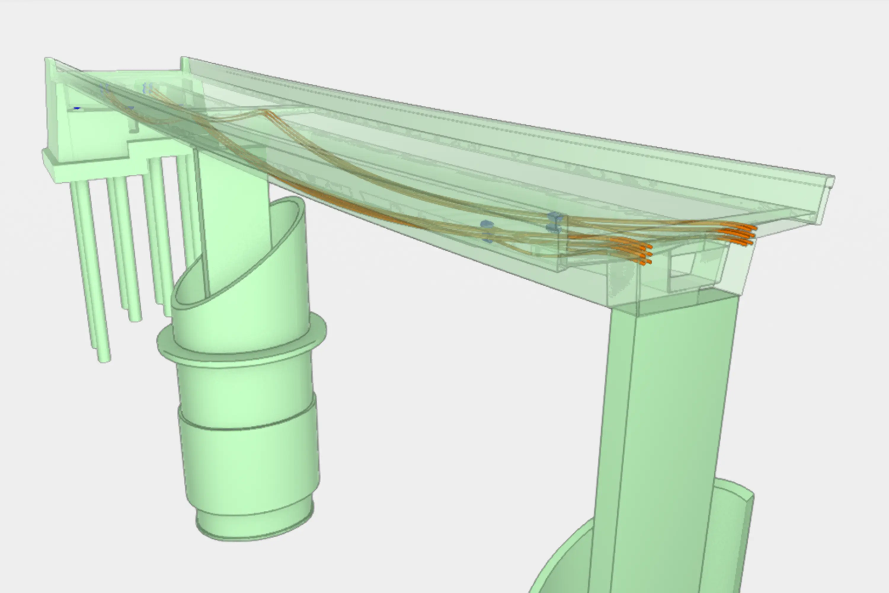 Die rund 215 m lange Brücke ist als vorgespannte Stahlbeton-Hohlkastenbrücke konzipiert. Schlanke Pfeiler und ein durchlaufender Überbau ermöglichen diese wirtschaftliche, monolithische und robuste Lösung. Sämtliche Pfeiler sind monolithisch mit dem Überbau verbunden. Insgesamt entsteht ein leistungsfähiges Infrastruktur-bauwerk, das Technik und Landschaft sensibel miteinander verbindet.