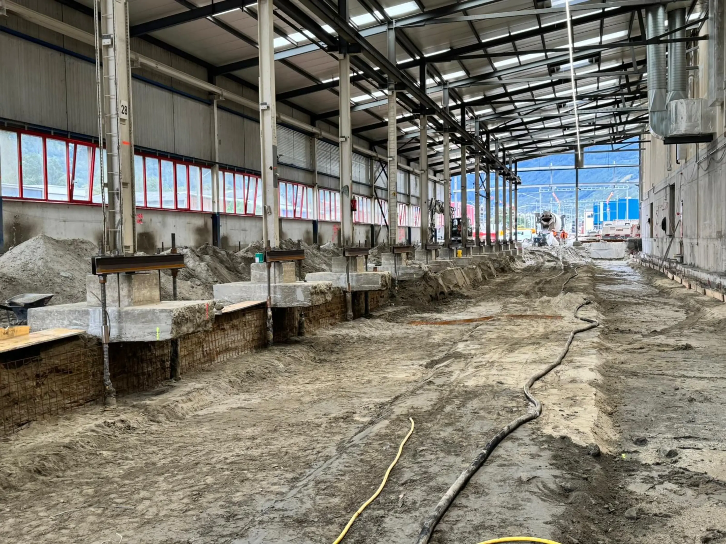 Le projet prévoit la transformation et l’aménagement de la halle Catogne sur le site Octofer à Martigny pour l’entretien des rames Flirt avec la création de 3 voies sur fosse de 100m, des passerelles d’entretien, l’installation d’un tour en fosse, d’un transbordeur, des cellules de pesage et de 2 ponts-roulants. La halle s’insère dans un environnement bâti qui a nécessité des reprises en sous-œuvre.